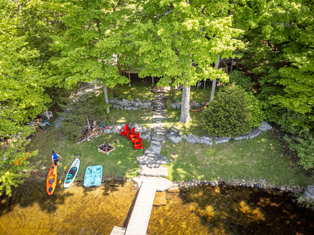 An on-site boat launch is available, which is a rare amenity on the lake. There is ample space at the large dock to dock your boat, pontoon or seadoo. A lovely marina is located just a few minutes across the lake to fill up your boat with gas and to get a delicious ice cream treat at their charming corner store!