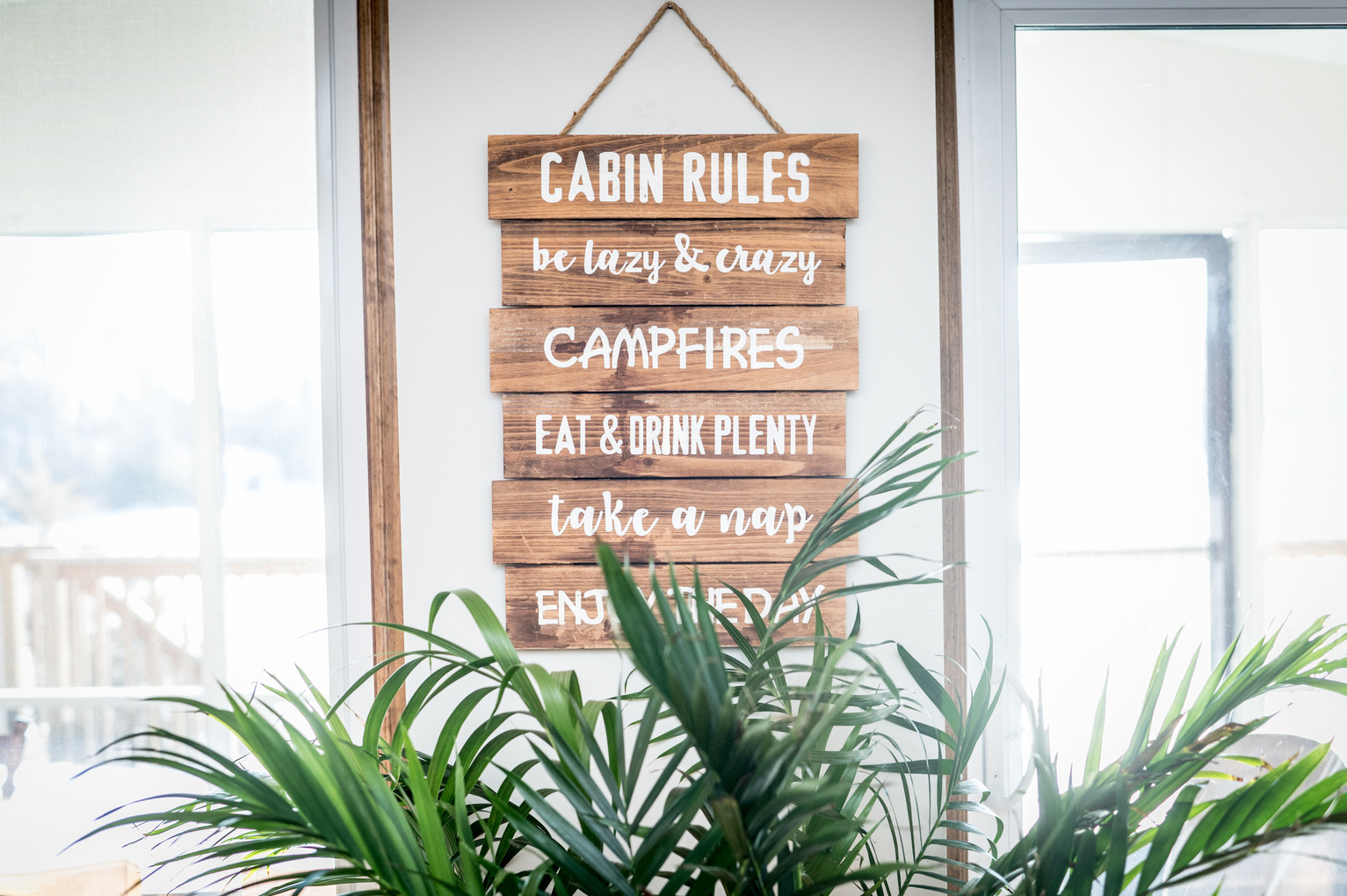 The open concept living room and kitchen are perfect for gathering together, and the large windows offer stunning views of the lake and provide ample natural light. A centerpiece stone wood fireplace adds to the room's charm. The décor includes comfortable seating arrangements and a mix of earthy tones, creating a cozy and inviting atmosphere. It is perfect for those cozy days and evenings. With comfortable seating on the sectional couch or at the dining table, it is the ideal space to gather with your family and friends and play a variety of board games. Whether you're settling in for a quiet night in or enjoying a lively game night, the living room is a great place to relax and unwind!